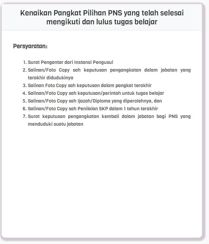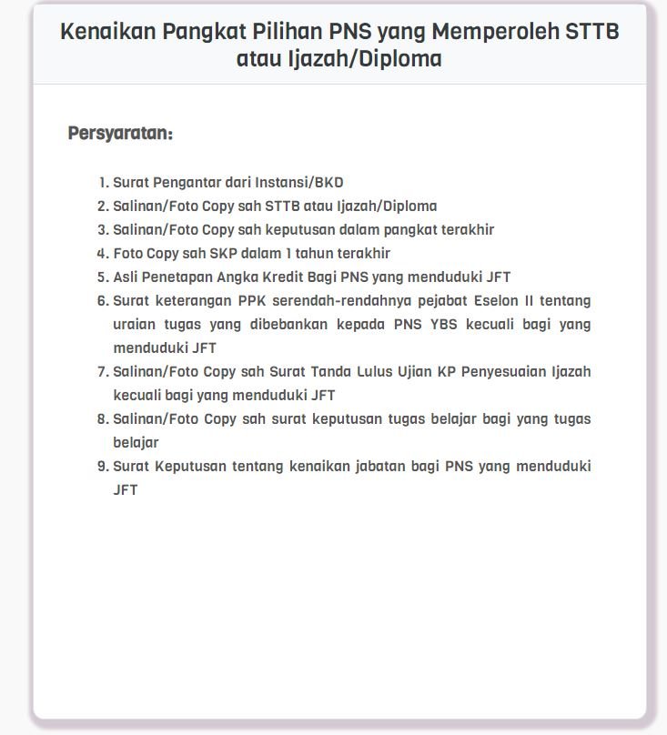 Kenaikan Pangkat Pilihan PNS yang memperoleh STTB atau Ijazah / Diploma